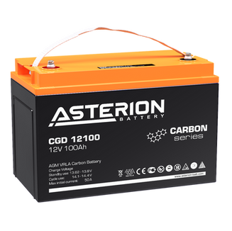 ASTERION lead-acid batteries of the CGD series are manufactured according to AGM technology (electrolyte absorbed in a fiberglass separator). As part of the active mass, a carbon addition in the form of graphene is used what makes ASTERION CGD batteries resistant to deep discharges and high temperature stability under adverse operating conditions.